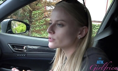 platinblonde schlampe gibt seinem freund in seinem truck einen superdampfenden sinnlichen blowjob und schluckt sperma