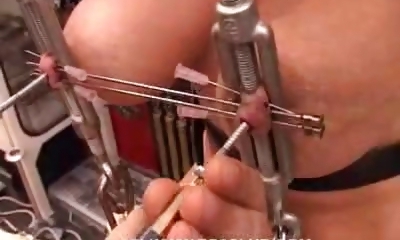nippleringlover kinky cougar beobachten durch feuchtes hemd im pool vorhängeschlösser in extrem gepiercten brustwarzen