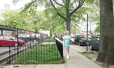Puny knockers skinny GF Nelya teases and gets fucked in her tight ass
