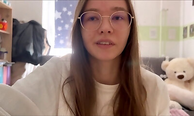Sexy inexperienced teen girlfriend fingering her cunt to orgasm on her chair