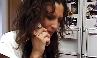 Mature plastic ash-blonde Rebecca More gets a rough bang in the kitchen