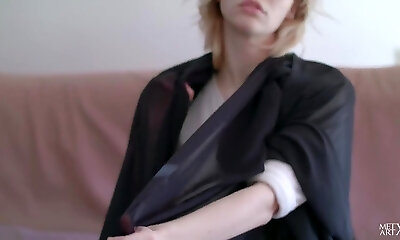 Passionate blonde in high stilettos makes the most of her time by her lonesome