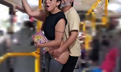 Young whore student gets drilled by an older guy right on the bus in public