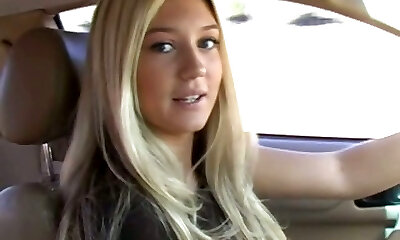 Blonde teen gives lucky cock best bj in the car - Fledgling