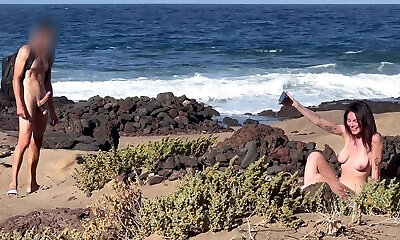 NUDIST BEACH BLOWJOB: I showcase my hard chisel to a super-bitch that asks me for a blowjob and cum in her mouth.