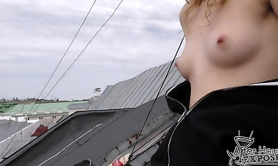 Sexy Jessica Nyx smokes a cigarette and shows hooters
