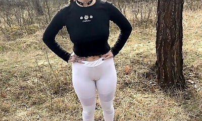 Pissing wetting yoga trousers many positions