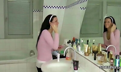 जर्मन चरण-बाल शॉवर में पकड़ा और मदद करता है के साथ हाथ नौकरी